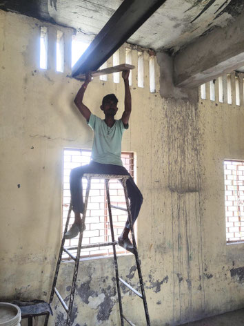 Thanks to a generous donation from Stephanie (Harmony with Nature), we’ve completed urgent roof repairs — four of five concrete beams were damaged and are now reinforced. The team is currently plastering the walls.